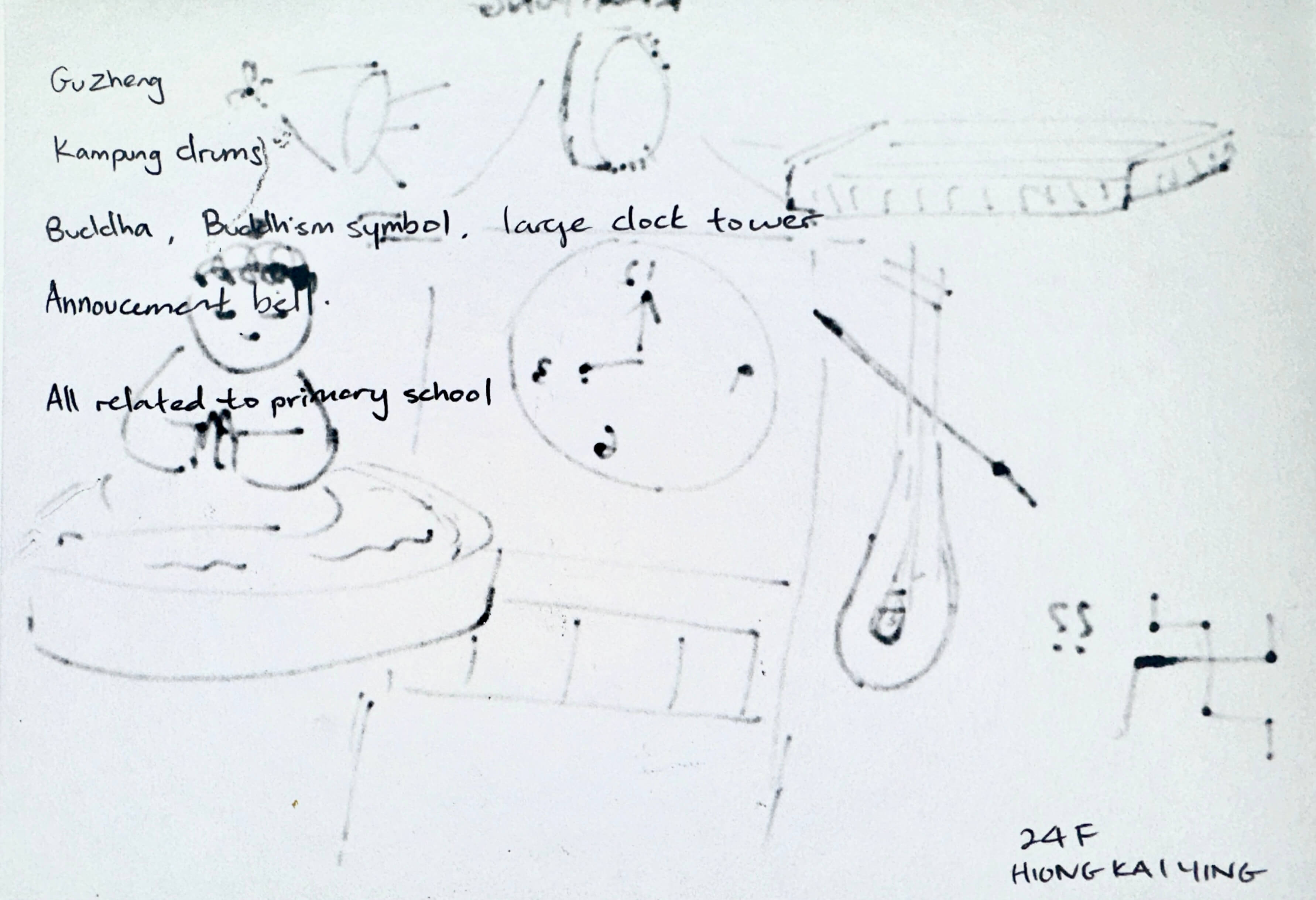 For example, Kaiying had to sketch her drawings out on a notepad before drawing it directly on the given paper. The rough sketch helped her memory to be more detailed. She also only uses black markers. Similarly, Ben tend to use more black crayons, whereas Zi Wei uses many coloured crayons.